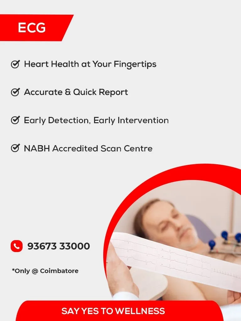 You can schedule an ECG Scan in Coimbatore through the OrbitoAsia Diagnostics  online website or call us at +91 9367333000.